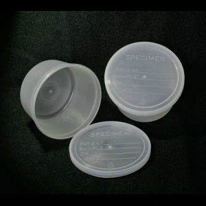 Marca Medegen, la caja tiene 250 piezas; tiene capacidad de 240ml u 8oz., mide 5cm de alto y 9.5 de diámetro superior y 7.5cm de diámetro en la base. Es translúcido. Están hechas de polipropileno y poliestireno. Este recipiente está hecho a prueba de derrames, cuenta con tapa que cierra a presión y tiene un amplio espacio para identificar los datos del paciente y el contenido del recipiente, las tapas llevan impresa la palabra “espécimen”.