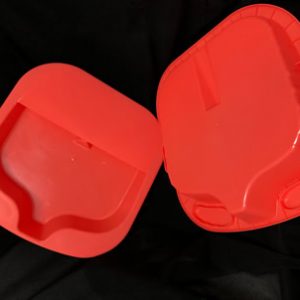 Marca Medegen, la caja tiene 6 piezas, su capacidad es de 2 litros, sus medidas son: 40cm de largo, 37.46cm de ancho; altura delantera 6.8cm y de altura trasera de 1.27cm. Cuenta con un contorno firme para que no se deforme; tiene forma de cuña, diseñado para pacientes con obesidad que van desde los 100kg hasta 400kg de peso, cuenta con 4 agarraderas que facilitan el manejo, transporte y vaciado.