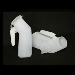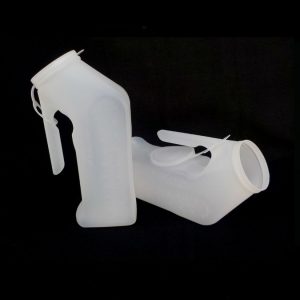 Marca Medegen, la caja tiene 50 piezas. Su capacidad es 1 litro. Miden 24cm de alto y 10 de ancho; están fabricados en polietileno; los orinales son translúcidos permiten medir y ver el contenido; están graduados en incrementos de 25ml., Cuentan con agarradera para fácil manejo y con tapa para evitar derrames y olores. A diferencia del H140-01 es más rígido.