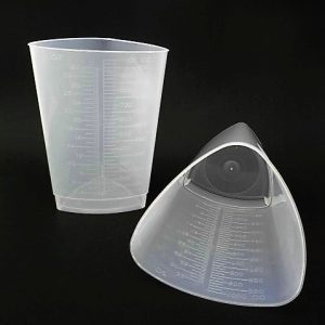 Marca Medegen, la caja tiene 200 piezas, es un recipiente triangular; su capacidad es de 1 litro o 32oz, graduado en incrementos de 25ml; mide 15.5cm de alto, 8.5cm por lado en la base y 12cm por lado en la parte superior; está hecha de polipropileno, translucido, irrompible, es ideal para medir tomas o salidas; también incluye una sección para anotar la información del paciente.