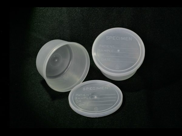 Marca Medegen, la caja tiene 250 piezas; tiene capacidad de 240ml u 8oz., mide 5cm de alto y 9.5 de diámetro superior y 7.5cm de diámetro en la base. Es translúcido. Están hechas de polipropileno y poliestireno. Este recipiente está hecho a prueba de derrames, cuenta con tapa que cierra a presión y tiene un amplio espacio para identificar los datos del paciente y el contenido del recipiente, las tapas llevan impresa la palabra “espécimen”.